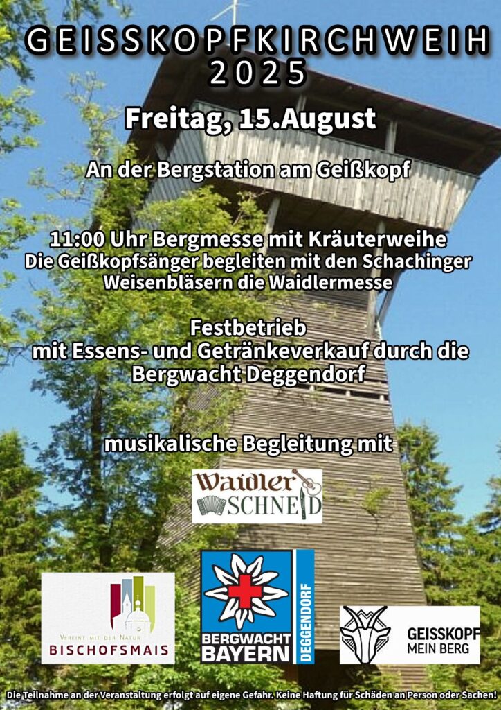 Am Freitag, den 15. August 2025, ist es wieder so weit: Wir freuen uns, euch herzlich zur Geisskopf Kirchweih begrüßen zu dürfen.