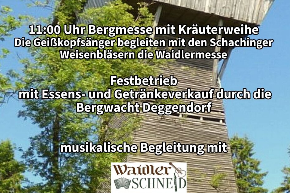Die Waidlermesse mit Kräuterweihe beginnt um 11:00 Uhr und wird wie gewohnt von den Geißkopfsängern und den Schachinger Weisenbläsern musikalisch feierlich umrahmt.