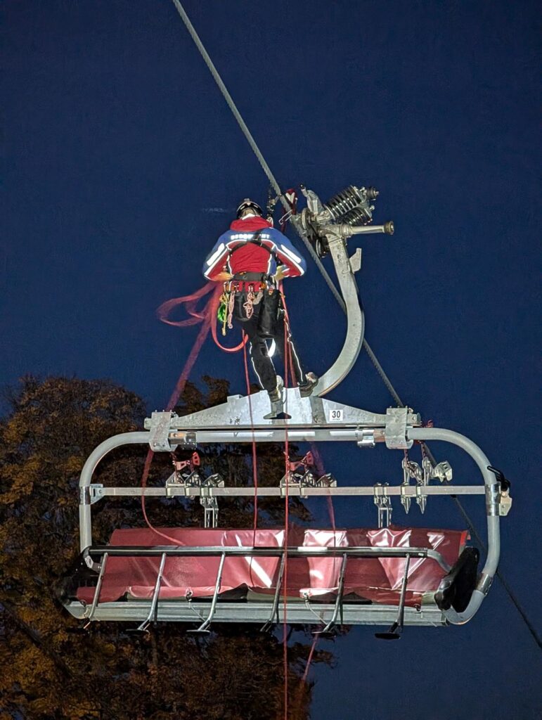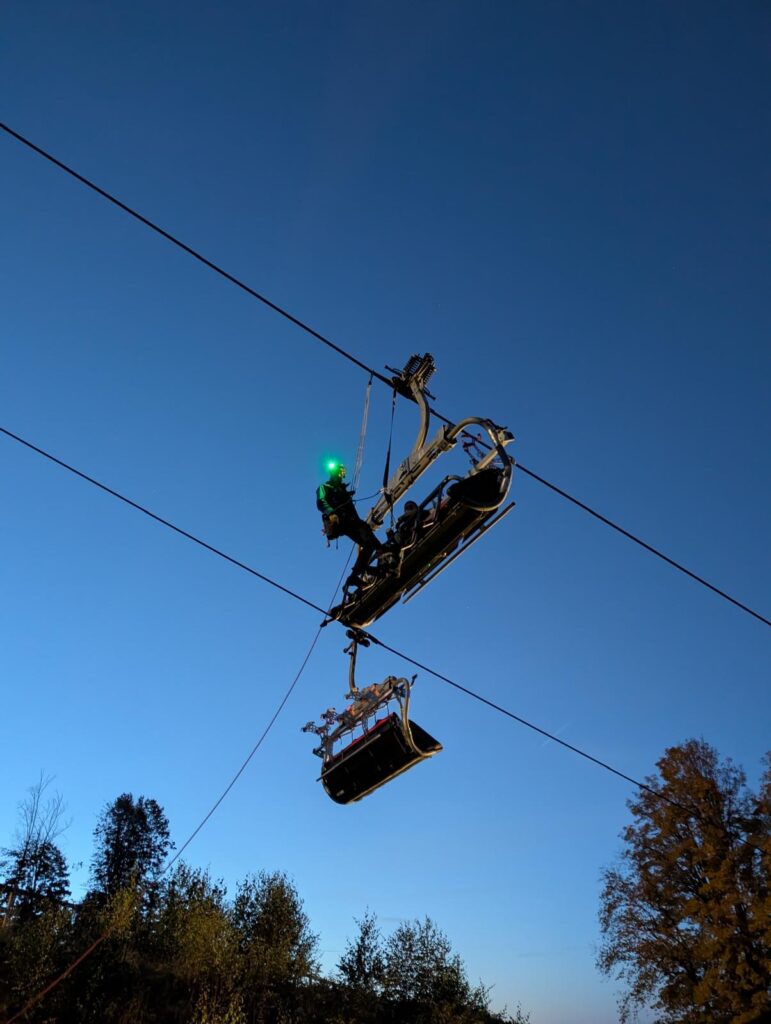 Die Sicherheit der Fahrgäste an der Geisskopf-Sesselbahn hat jederzeit oberste Priorität. Moderne Anlagen sind zwar technisch auf höchstem Niveau, dennoch müssen die Rettungskräfte auf jedes Szenario vorbereitet sein – auch auf den unwahrscheinlichen Fall eines längeren, technisch bedingten Stillstands.